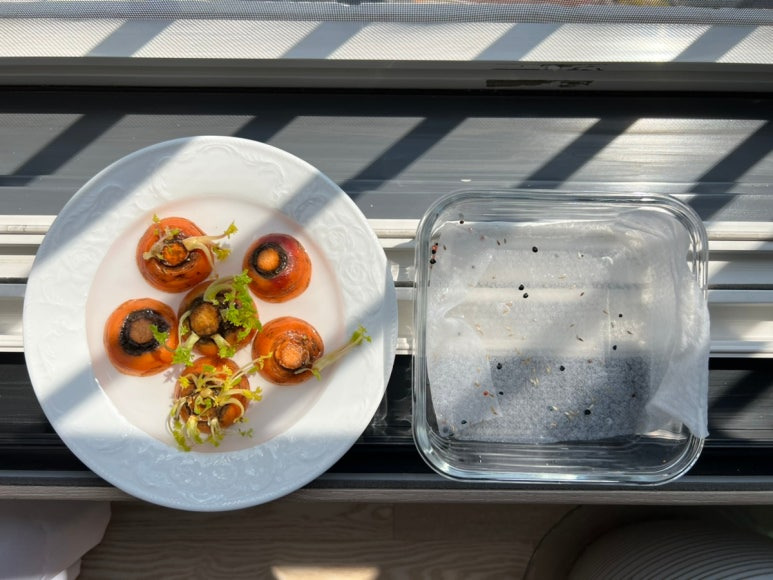 저녁이 되니 벌써 씨앗이 발아했어요.