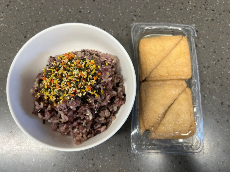 보통 건강에 안 좋은 컵라면을 자주 먹게 되는데 오늘은 안되겠다 밥을 좀 해먹자 싶어 유부초밥을 만들어 먹어보았습니다.